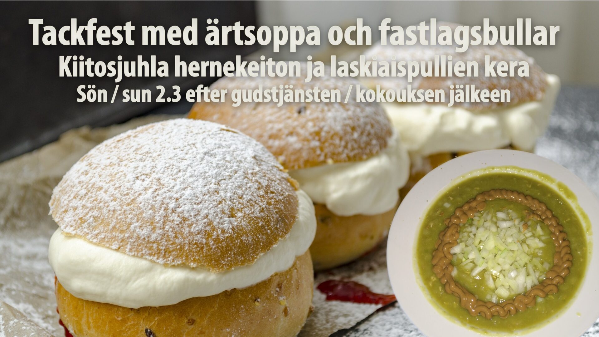 Den fjärde söndagen i månaden inbjuder vi alla till den finska samlingen kl. 16 som kallas “Ilosanoman iltapäivä”. Det betyder att vi inte kommer att ha en svensk gudstjänst just den söndagen utan erbjuder tolkning via hörlurar till svenska vid behov. På motsvarande sätt erbjuder vi tolkning till finska via hörlurar övriga söndagar – och speciellt då första söndagen då Mia predikar och vi firar nattbard.