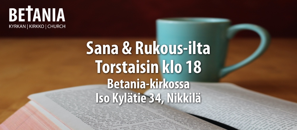Kaikki ovat iltoihin tervetulleita! Toivomme myös, että näiden suomenkielisten Sana- ja rukousiltojen kautta voit löytää Betania- seurakunnan myös paikallisena hengellisenä kotiseurakuntanasi.