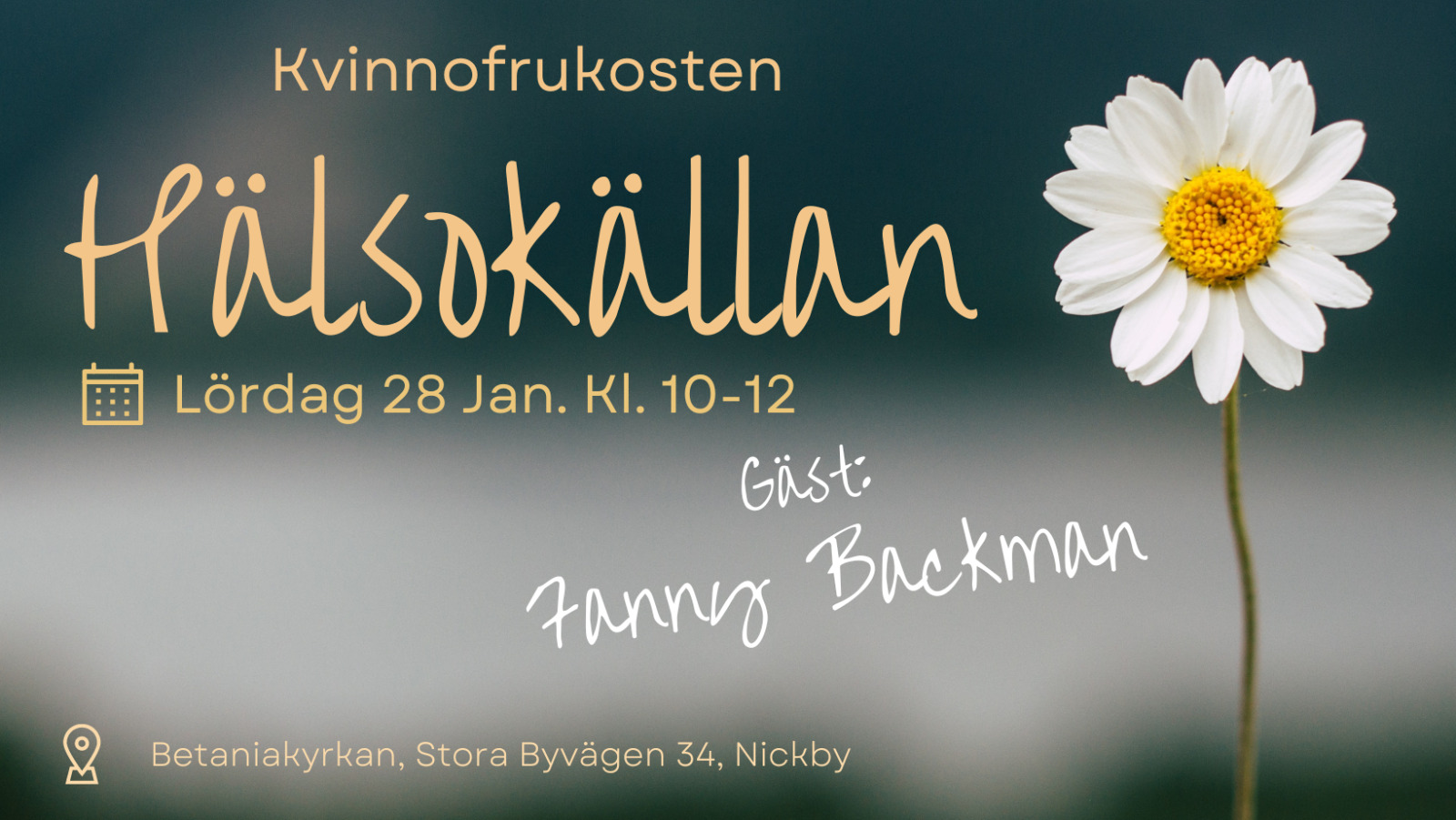Kvinnofrukosten Hälsokällan arrangeras lördagen den 28 januari kl. 10-12. Dagens gäst Fanny Backman.