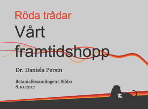 Daniela Persin undervisar om vårt framtidshopp. I Bibeln kan du finna olika texter som beskriver framtidens händelser och Guds handlande i historien. Gud har en plan och han kommer att fullfölja den. Det går som en röd tråd genom hela Bibeln.
